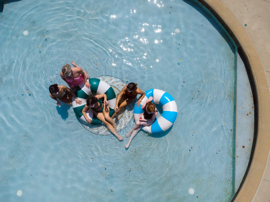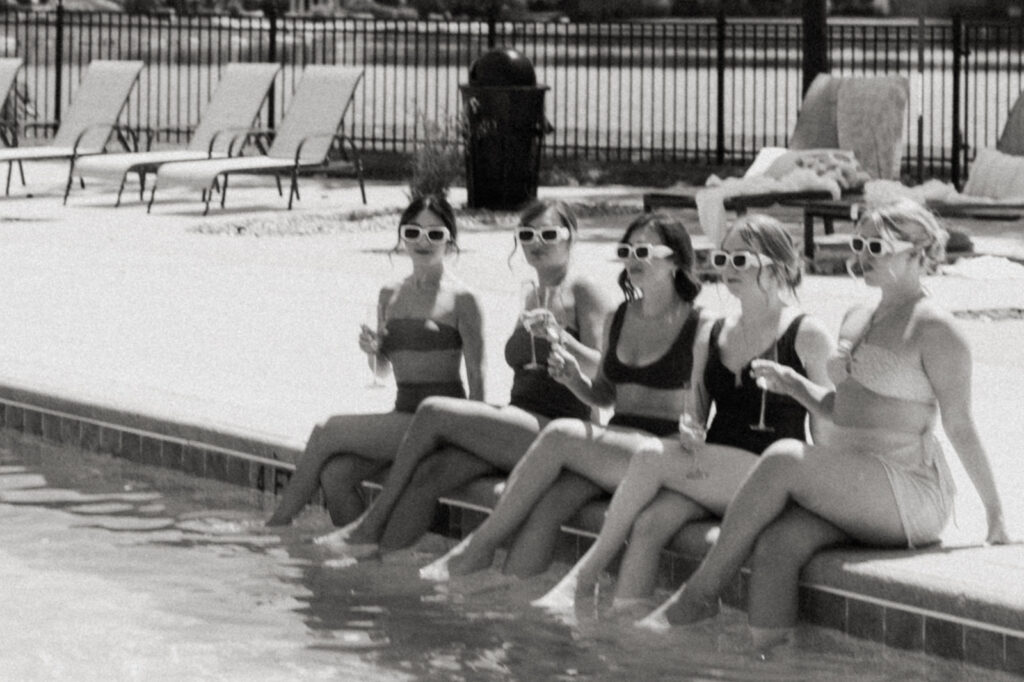 Later, the party moved poolside for a champagne moment straight out of a postcard. The bridal party, dressed in chic swimwear and white robes, toasted under the sun with oversized sunglasses and sparkling laughter, a nod to carefree, sun-soaked weekends by the coast.