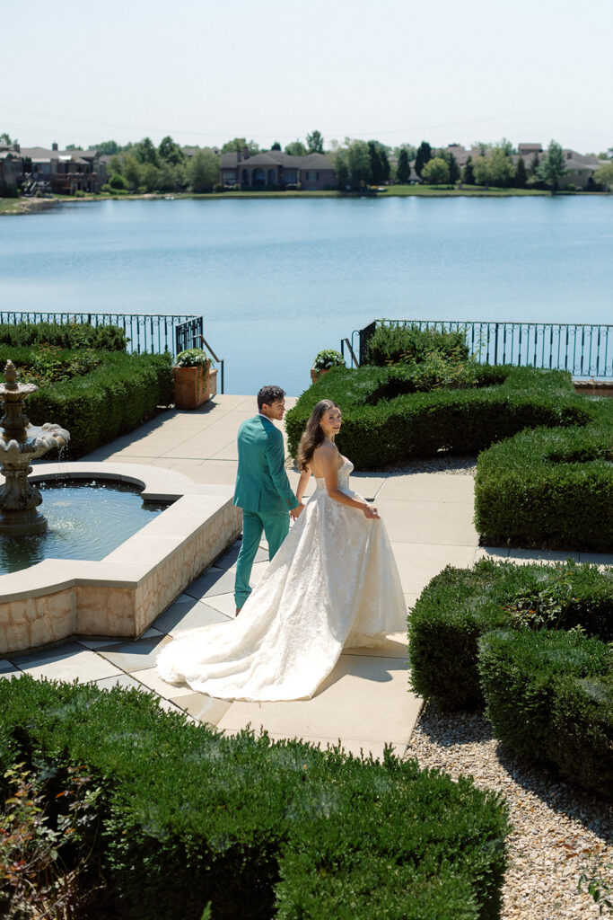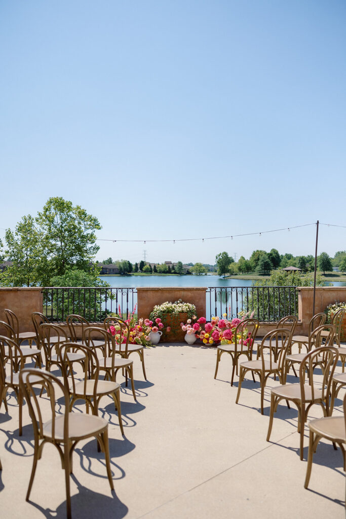 Nestled beside a sparkling lake, The Club at Corazon provided the perfect backdrop for this editorial. Its Tuscan-inspired architecture, lush greenery, and waterfront views offered the ideal blend of Italian romance and Ohio charm. Every corner felt like a scene from a European summer, proof that you don’t need to board a plane to achieve a destination-worthy wedding.