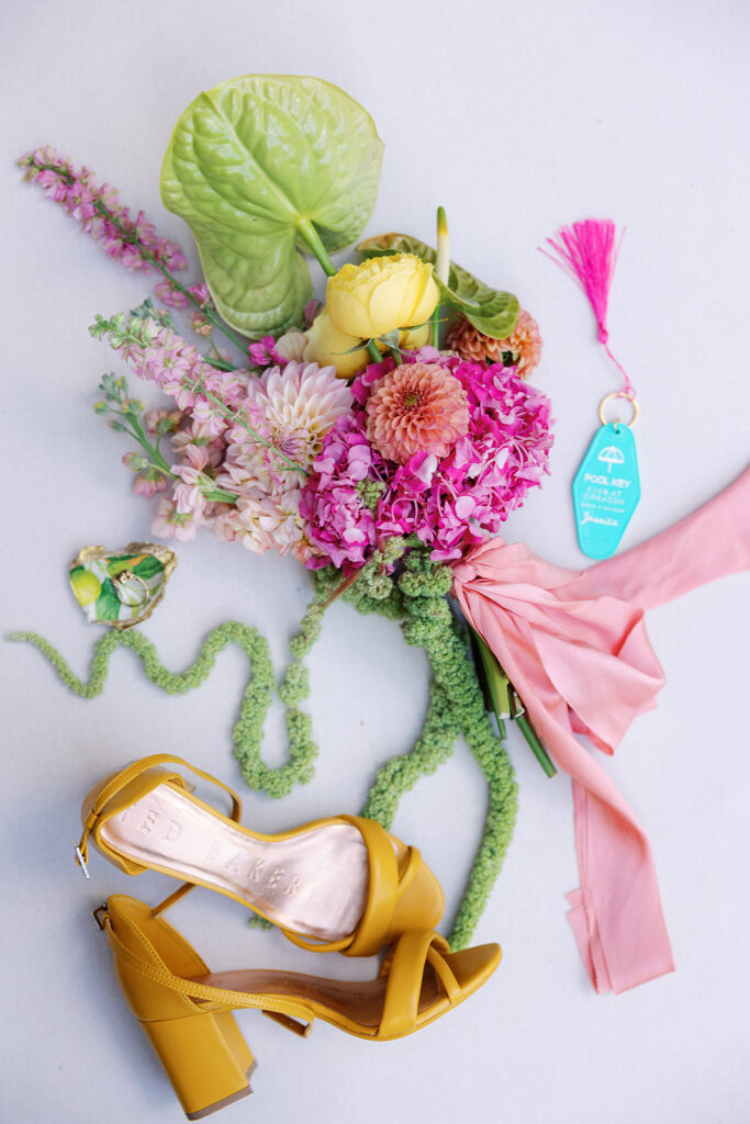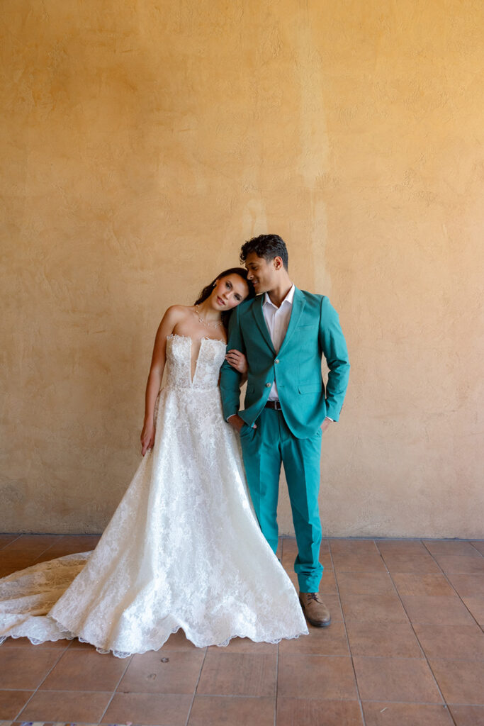 The groom’s mint green suit from Kingme Menswear added just the right amount of flair, echoing the playfulness of Palm Springs while staying true to the sophistication of a European-inspired venue.
